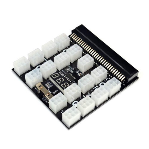 Description: Name: Power Supply Breakout Board Adapter for Ethereum Mining Material: Copper Output Power: 12v Board Color: Black Application: for mining graphics card power Features: Brand New and high quality. Made of copper material, durable and safe. Maximum support to 120W power supply. 2 Ounce Copper PCB, solid capacitor filter, 17 of 6 Pin PCI-E output. Suitable for a variety of server power supply bare board accessories, you can also choose adding 17pcs output wires. Applies to the common server power supply: DPS-800GB A DPS-1200FB A DPS-1200QB A PS-2751-5Q PS-2751-LF-1F HSTSN-PL12 DPS-700LB D PS-2112-5L DPS-750RB A Packing List: 1 x Breakout Board Adapter(Not including power cable)