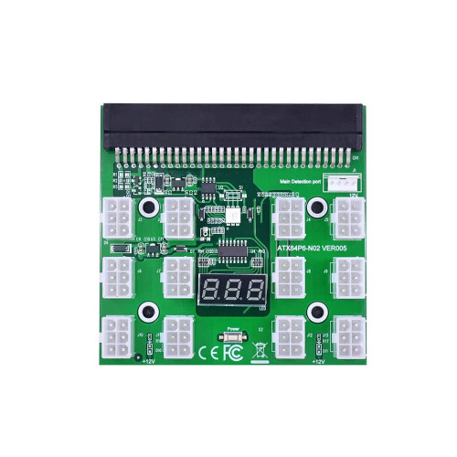 12 port breakout board Combined with the quality of an HP, Delta, or Lite-On server PSU, the X8 breakout board was designed to withstand the harsh cryptocurrency mining environment 24/7/365. Combine this adapter with a server power supply to use with ASIC miners and GPU mining rigs to mine bitcoin and other crypto currencies. All components tested before shipping. Cable Option 1: 6 Pin PCIE to 6 Pin PCIE  (Typically used with ASIC Mining) Cable Option 2: 6 Pin PCIE to 8 Pin (6+2) (ASIC or GPU Mining)